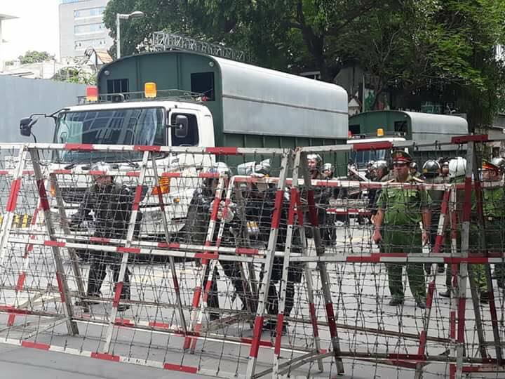 Lực lượng công an được huy động tối đã để ngăn chặn biểu tình. Trên các đường phố, tràn ngập cảnh sát trong các mầu áo.